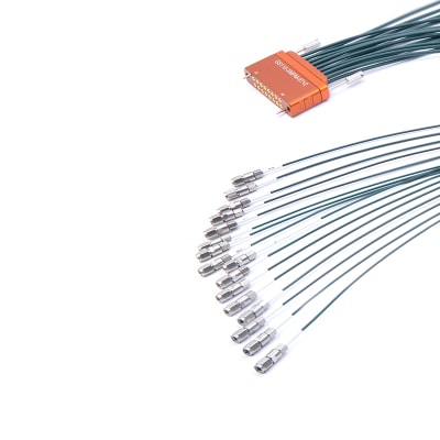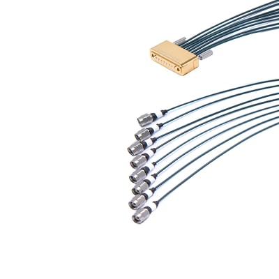 频 率:DC-50GHz 电缆插损:5.72dB/m@50GHz VSWR:1.35:1@50GHz Max. 集束接头:8芯集束 插芯类型:SMPM-2.4公头